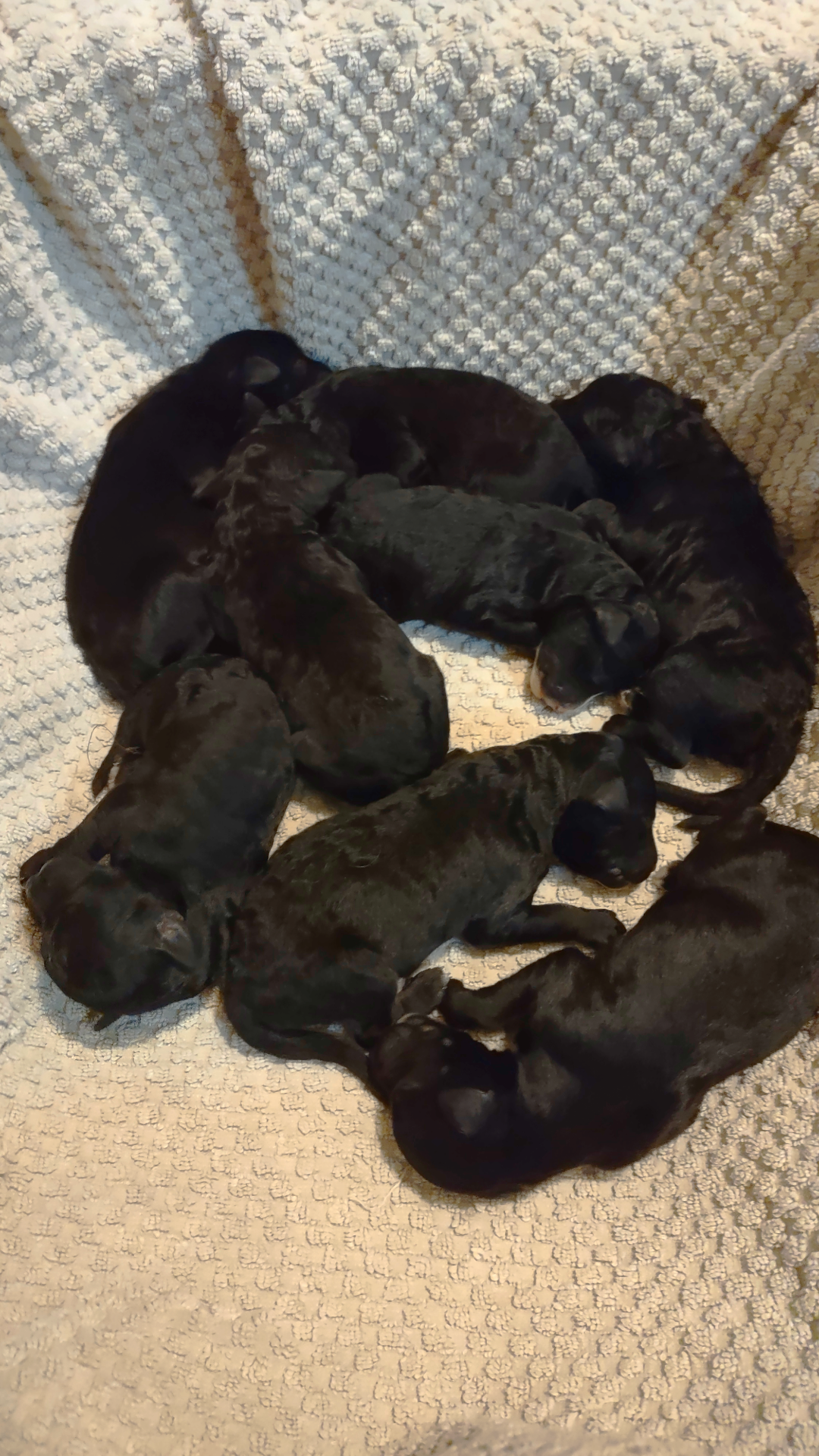 What you came here to see! The puppies are here and doing so well. Look at those coats! They’re all healthy and gaining weight, we’re proud of mama Scout!